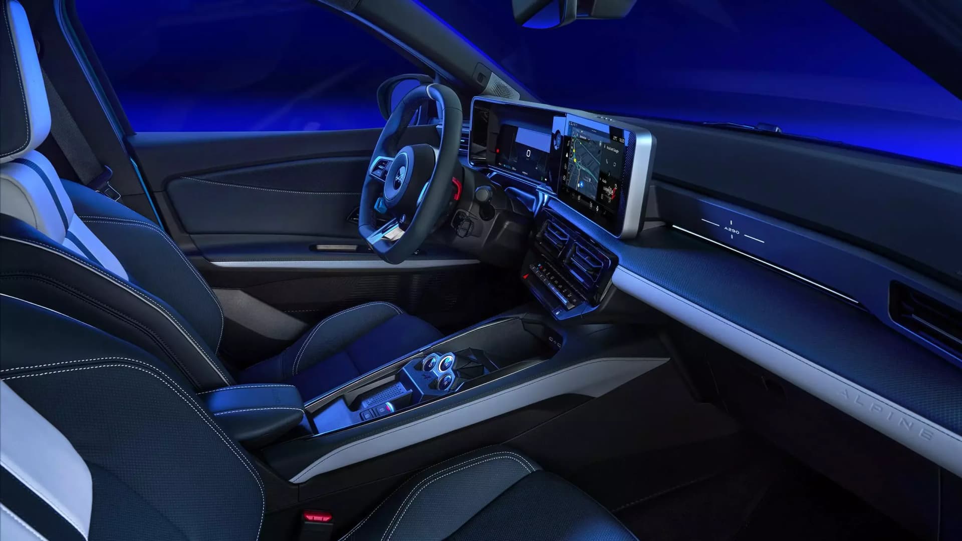 Det tofargede nappaskinnet, utsmykket med det franske flagget, fullfører interiørets atmosfære og viser stolt frem A290s «Made in France»-tradisjon. Hver reise blir en altoppslukende opplevelse, hvor komfort og sportslighet møtes i et miljø av ren raffinement.