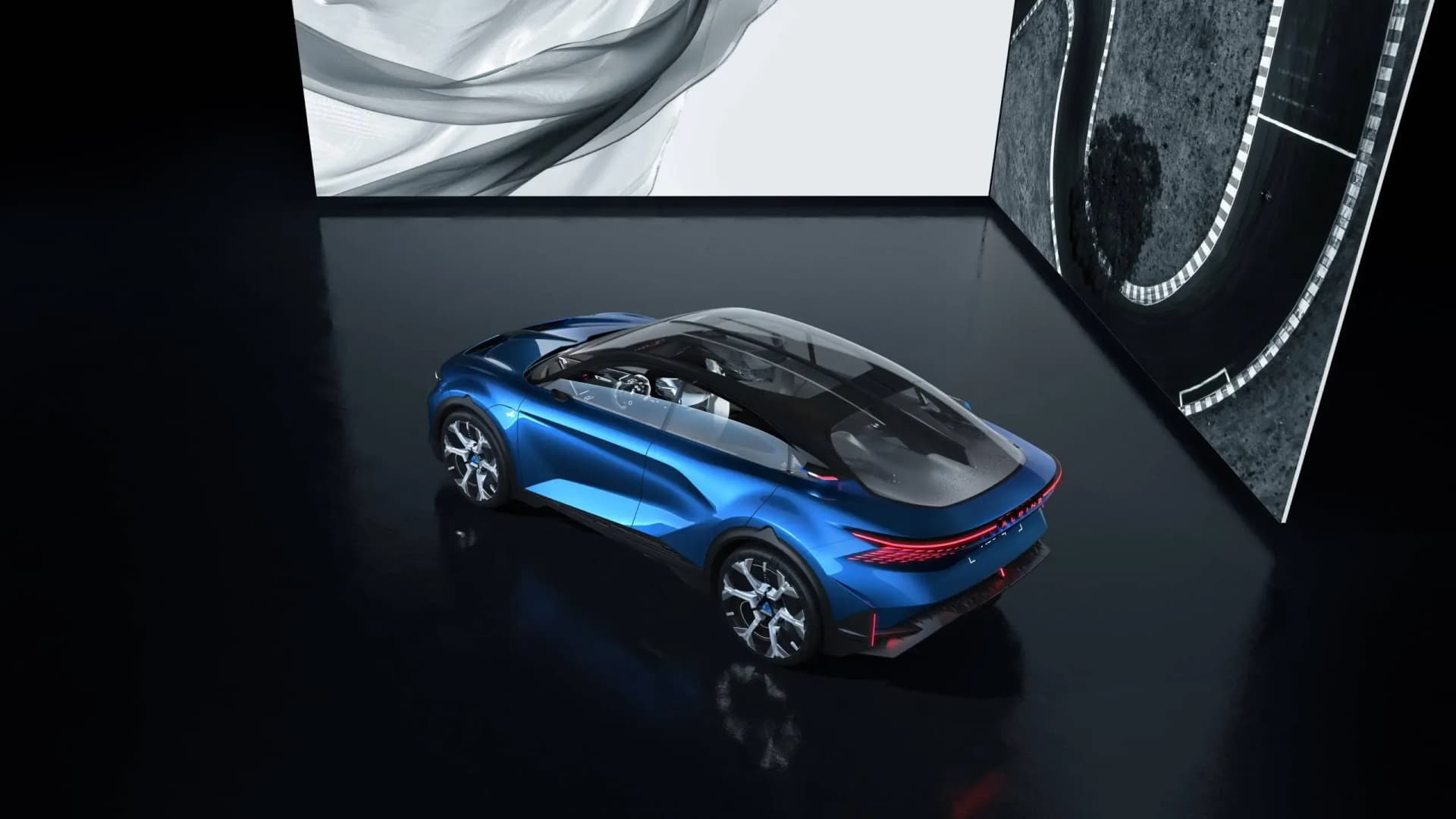 En rekke dynamiske chassissystemer ligger til grunn for den fremtidige Alpine fastbacken. En levende blå glød i alle fire hjulene på showbilen A390_β forteller historien om teknologien under.
