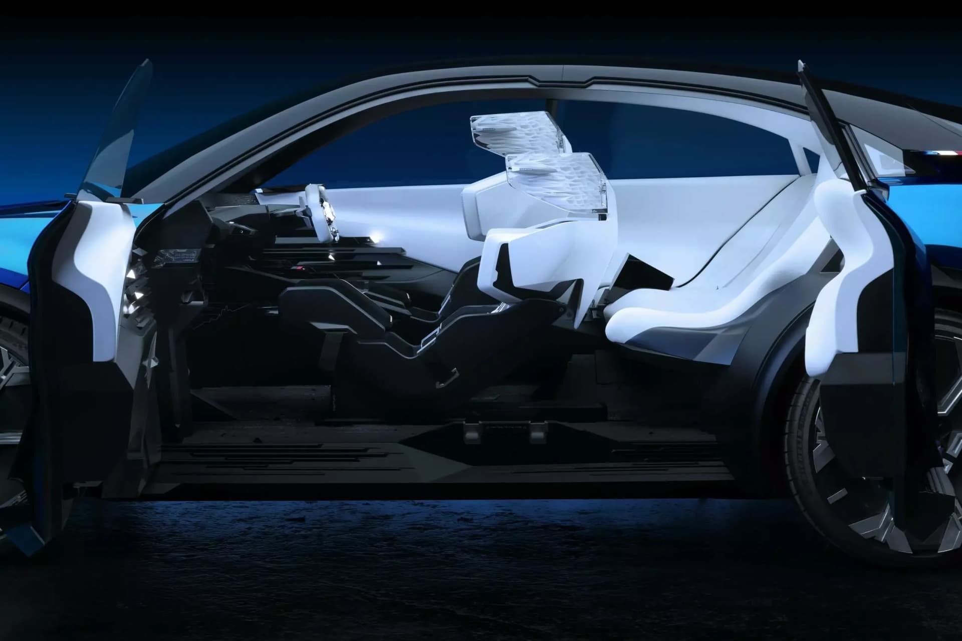 Spektakulære lyssignaturer viser frem levende lukkertider som beviser den spennende naturen til A390_β. En aerodynamisk frontvinge kombinert med en aktiv diffusor bak gir en ekte motorsportfølelse. Bakhengslede dører avslører et dobbeltsidig interiør.