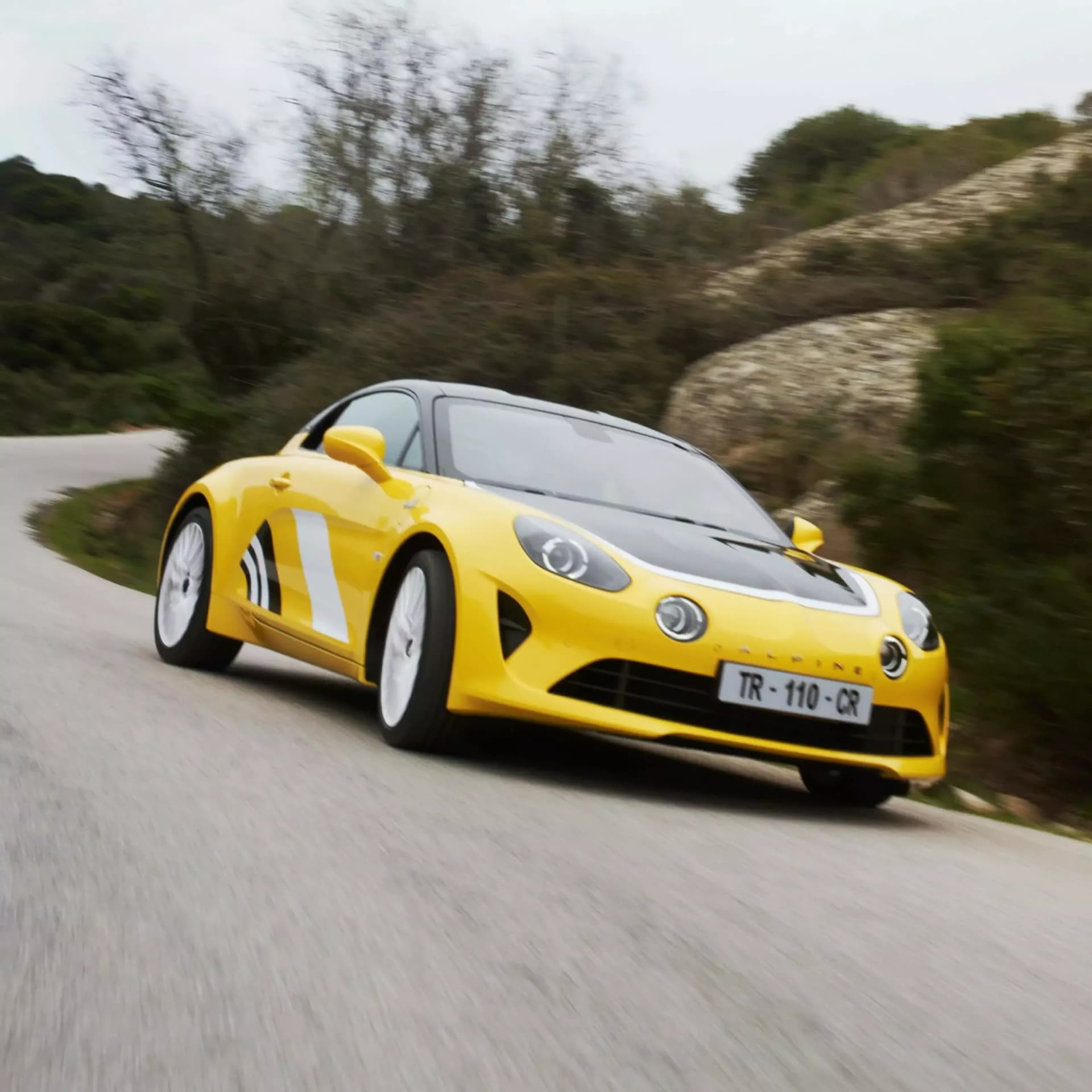 A110 Tour de Corse 75, med sin ikoniske dekor i gult, svart og hvitt, er en hyllest til Alpine nr. 7 som deltok i Tour de Corse i 1975. Det ikoniske designet og kupéen lar deg leve deg inn i rallyverdenen gjennom 10 000 svinger.